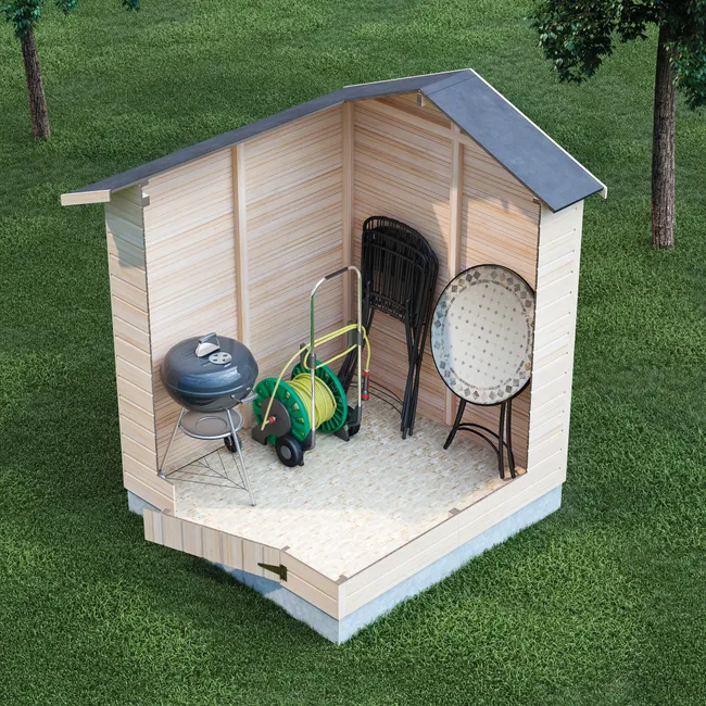 Szopa ogrodowa Lima wykonana z drewna sosnowego z polarnej strefy klimatycznej o łącznej powierzchni 3,12 m² i grubości 12 mm, z pokryciem z tkaniny asfaltowej i podłogą w zestawie. Zaprojektowany do przechowywania poza domem, ma proste drzwi wahadłowe z zamkiem dla większego bezpieczeństwa. Wskazany do umieszczenia na płycie betonowej o wymiarach 1,52 x 1,6 metra.