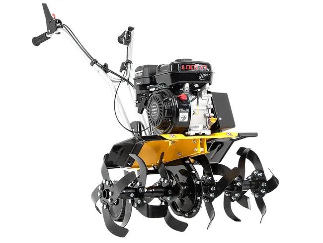 Glebogryzarka spalinowa 7HP-1050G ze skrzynia biegów z powodzeniem może zastąpić droższe analogi glebogryzarek z silnikiem diesla lub nawet mini-ciągnik z jedną osia. Ponadto urządzenie posiada tylną oś z aktywnym napędem, która umożliwia wykorzystanie wraz z kultywatorem osprzętu, w tym pompy silnikowej lub pompy opryskowej. Możliwe jest również zainstalowanie przyczepy do transportu towarów oraz szerokiej gamy osprzętu zaprojektowanego do obróbki wszystkich rodzajów gleby dla maksymalnego spełnienia potrzeb konsumentów. Wydajny silnik pozwala wykonać zadania o dowolnej trudności, spełniając wszystkie europejskie standardy jakości, w tym najbardziej aktualne normy emisji spalin. System uproszczonego startu pozwala szybko uruchomić silnik, bez dużego wysiłku. Ergonomiczny panel sterowania pozwala szybko kontrolować kultywator oraz łatwo nim sterować. Dodatkowo, glebogryzarka daje możliwość pionowej regulacji uchwytów dla łatwego użytkowania i kompaktowego przechowywania, a także skrzynkę na narzędzia. Kolejna zaletą urządzenia są koła niskoprofilowe i bezdętkowe, skrzynia biegów ze stożkową przekładnią zębata oraz kute noże w kształcie szabli, które nadają się do stosowania z każdym typem glebogryzarki oraz do obróbki różnego rodzaju gleby: zarówno twardej ziemi, jak i uprawianej roli.
