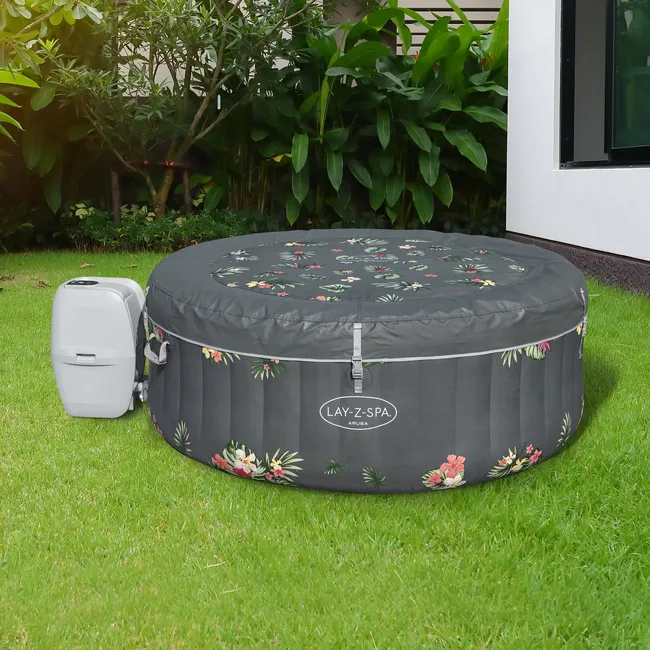 Po długim dniu nie ma nic bardziej relaksującego niż zanurzenie się w ciepłej, bulgoczącej wodzie na własnym podwórku. Lay-Z-Spa® Aruba AirJet™ zapewnia kojący masaż dla maksymalnie 3 osób, a jednocześnie jest szybka i łatwa w montażu. To spa osiąga temperaturę do 40ªC (104ªF), aby zapewnić doskonały relaks w otoczeniu 110 dysz masujących AirJet. Po prostu podłącz pompę i obserwuj, jak się napełnia powietrzem.