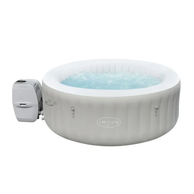 Pojemność: 2-3 osoby dorosłe Pojemność wody (80%): 605 l (160 gal.) Wymiar po napompowaniu: 1,70 m x 66 cm (67 x 26 cali) Rozmiar wewnętrzny: φ 1,24 m (φ 49 “) Waga po napełnieniu: 630 kg (1389 funtów) Rzeczywisty przepływ wody: 1.325 l/h (350 galonów/h) System podgrzewania: ok. 1,5-2,0℃/h (3-4℉/h) Max. temperatura podgrzewania: 40℃ (104℉) Waga netto: 25 kg (55 funtów) Maksymalna głębokość wody: 52 cm (20”) System masażu bąbelkowego AirJet ™ (110 dysz) Nadzwyczaj wytrzymałe ściany z DuraPlus™ zostały poddane testom wytrzymałościowym Automatyczne ogrzewanie Freeze Shield ™ zapobiega zamarzaniu wody i niszczeniu spa Zaprogramuj podgrzewacz spa do 40 dni wcześniej, aby móc go użyć w przyszłości Dozownik ChemConnect ™ zapewnia stabilny poziom chloru w całym spa Energooszczędny, sterowany regulatorem czasowym system grzewczy Cyfrowy panel sterowania i pompa spa ze zintegrowanym systemem filtracji. Wzmocniona pokrywa z klipsami zabezpieczającymi Zawartość: 1 spa, 1 pokrywa basenu, 1 pompa spa, wkład filtra (VI), 1 dozownik ChemConnect ™, łatka naprawcza, system AirJet ™