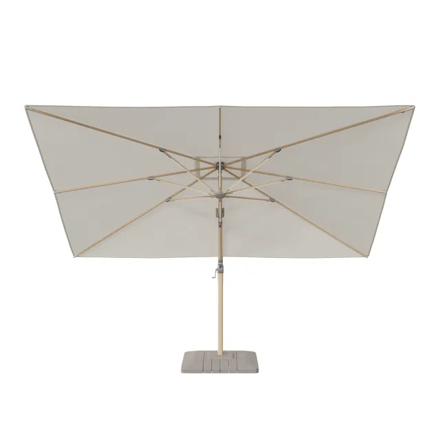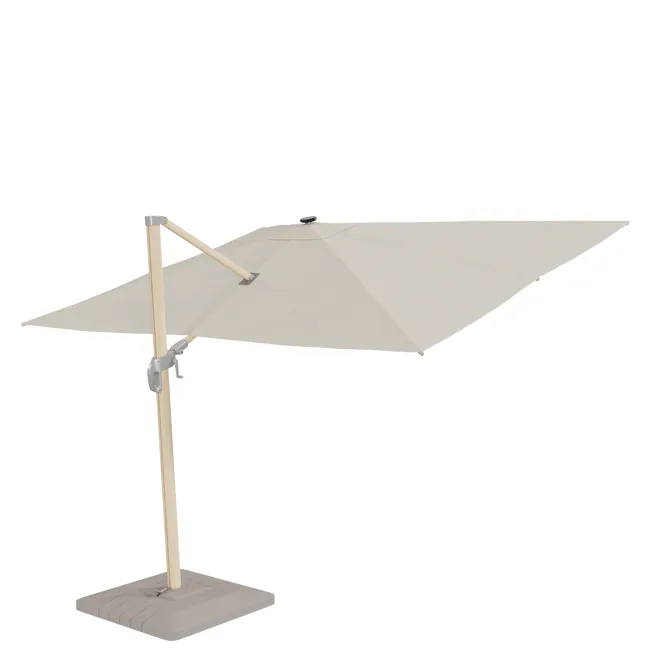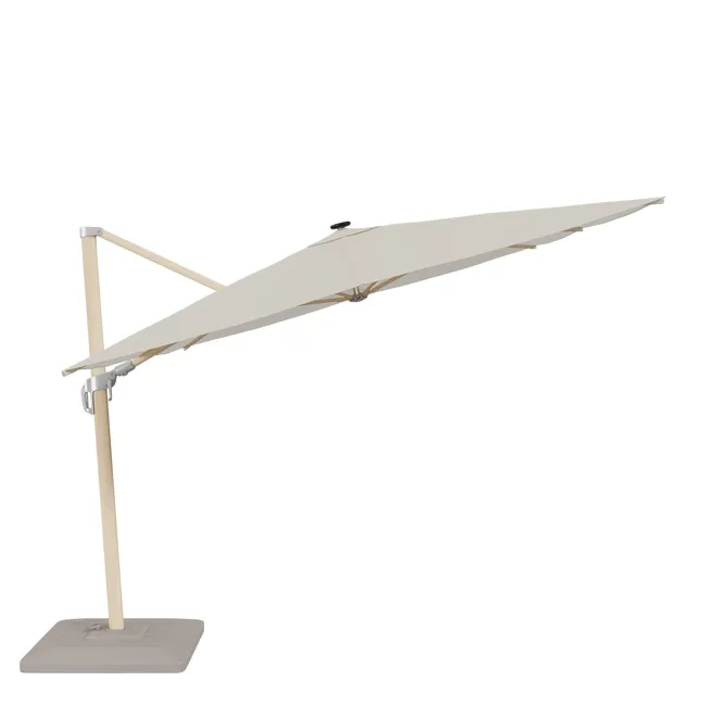 Parasol ogrodowy Sonora 280x390x274 cm z LED biały Naterial to piękny model, który da przyjemny cień wszędzie tam, gdzie zechcesz! Szerokość czaszy to aż 280 cm, dzięki czemu pod parasolem można ustawić meble ogrodowe i spędzać wspólnie czas z najbliższymi. Konstrukcja została wykonana z solidnego aluminium i utrzymana jest w jasnych kolorach. Pokrycie to wytrzymały poliester, który jest odporny na promieniowanie UV. Nie płowieje, szybko wysycha i jest stosunkowo lekki. System otwierania na korbę jest bardzo prosty i nie wymaga użycia dużej siły. Zaletą parasola jest też możliwość zmiany kąta nachylenia. Przyjemne i relaksujące chwile w jego cieniu są gwarantowane!
