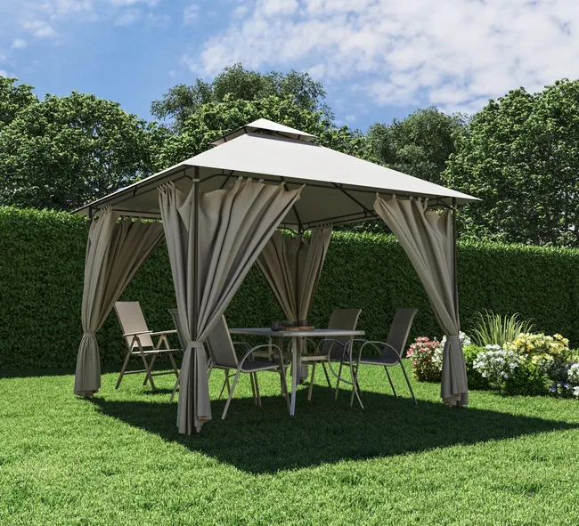 Pawilon ogrodowy Oxis298x301x280 cm z zasłonami taupe Naterial