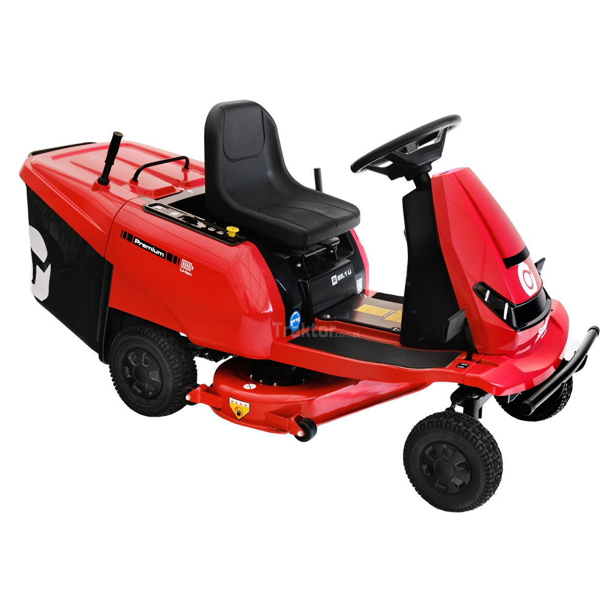 Traktor ogrodowy Rider Solo by AL-KO R-85.1 Li pozwala na bardziej wydajną i ekologiczną pracę, gdyż zasilany jest akumulatorem litowo-jonowym o mocy 72 V / 31 Ah. Czas pracy wynosi do 150 min. Traktor podczas jazdy do przodu może uzyskać prędkość do 6,5 km/h a podczas jazdy do tyłu 5,0 km/h. Dzięki szerokości koszenia 81 cm a szerokości całkowitej tylko 85 cm jest idealnym urządzeniem do koszenia wąskich i trudno dostępnych powierzchni. Urządzenie typu Rider jest zbudowane tak, aby możliwe było koszenie przy krawędziach. Wysokość koszenia jest regulowana centralnie w 10 poziomach od 2,5 cm do 13 cm. Powierzchnia koszenia to aż 6 000 m2 a kosz zbiorczy ma pojemność do 190 litrów, o jego zapełnieniu informuje sygnał dźwiękowy. Kosz opróżniany jest za pomocą dźwigni teleskopowej. Tylna oś wykonana jest z żeliwa, dzięki czemu posiada szczególnie długą żywotność.