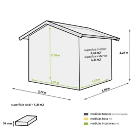 Metalowa szopa panorama o wymiarach 273x227x158 cm i powierzchni 4,31 m2