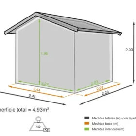 Metalowa szopa Europa o wymiarach 244x203x228 cm i powierzchni 5,56 m2