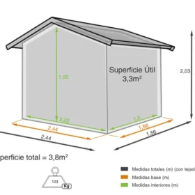 Metalowa szopa Green Europa o wymiarach 244x203x156 cm i 3,8 m2