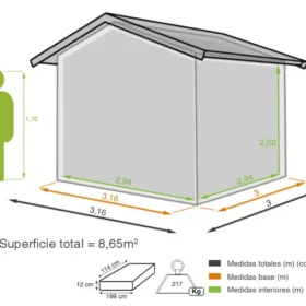 Metalowa szopa Green Europa o wymiarach 316x209x300 cm i powierzchni 9,48 m2
