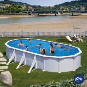 Wyjmowany basen owalny ze stali białej GRE o wymiarach 7,3 x 3,75 x 1,20 m