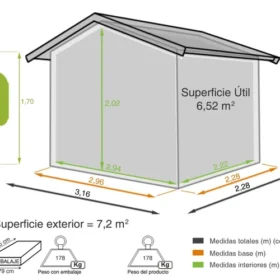 Europa zielona metalowa szopa o wymiarach 316x209x228 cm i 7,2 m2
