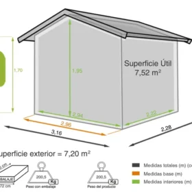 Europa szopa z metalu kwarcowego o wymiarach 316x209x228 cm i 7,2 m2