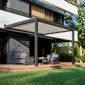 Genova dołączona pergola bioklimatyczna 4×3 m w kolorze szarym z białymi listwami